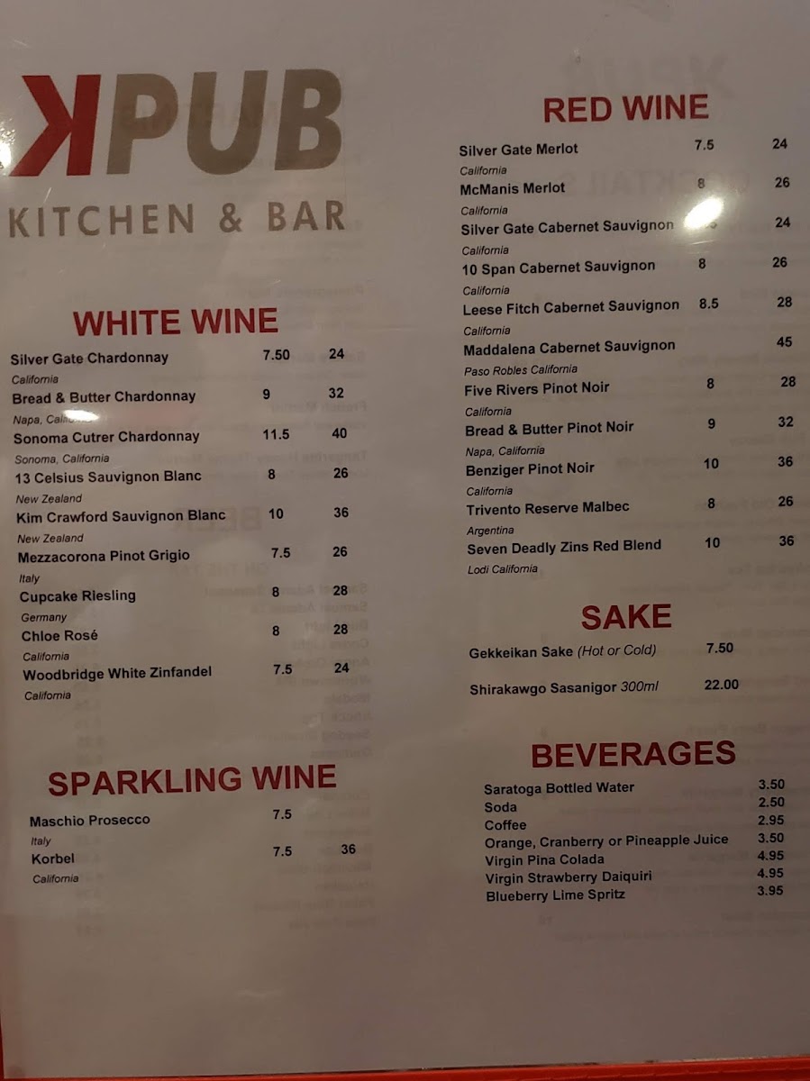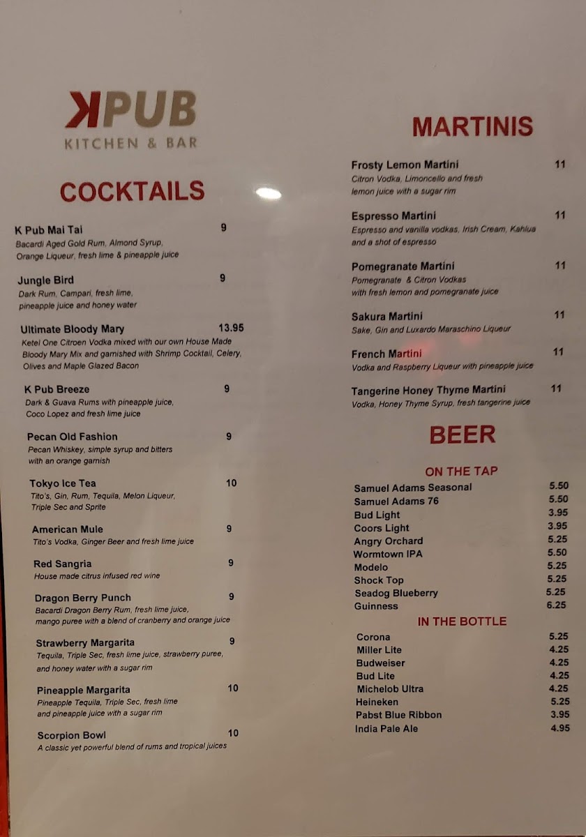 - Atmosphere: With multiple TVs for sports, trivia nights, and a lively digital DJ, K Pub is an ideal gathering spot for friends or a special date.